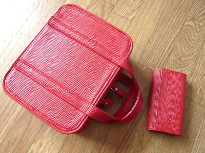 まずは、真っ赤なジュエリーポーチとキーケースのセット。