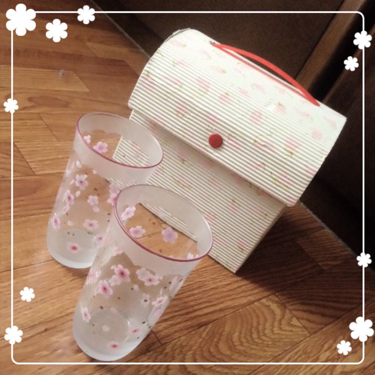 まず1つ目は、桜の季節にピッタリの桜柄のグラス♪ 5つsetで¥300