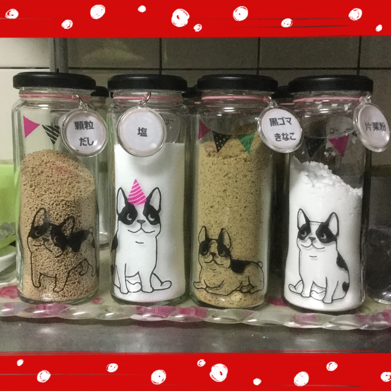 調味料とお菓子材料の入れ物を可愛いビンに変えました。