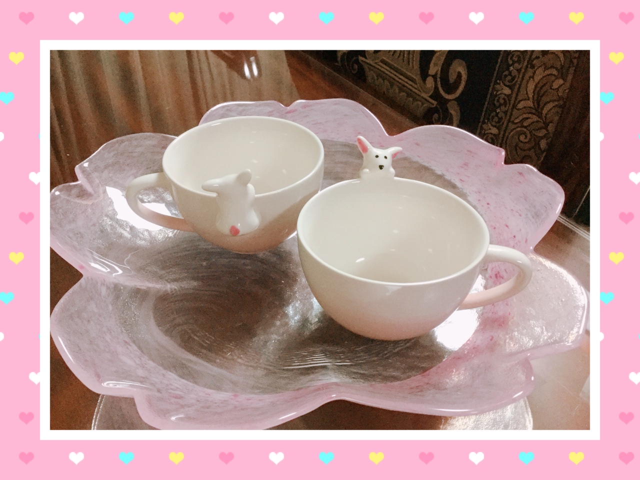 桜の大きなガラス皿と可愛すぎるカップです。