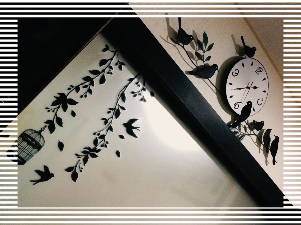 去年、洗面の鏡に小鳥のシールを貼ったので、時計も小鳥にしました♪