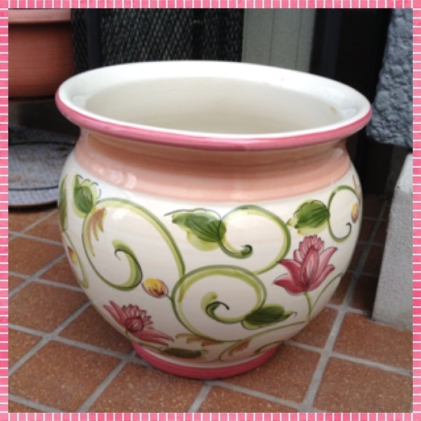 フリーマーケットで大きな鉢カバーを買いました!お花柄で可愛いです。